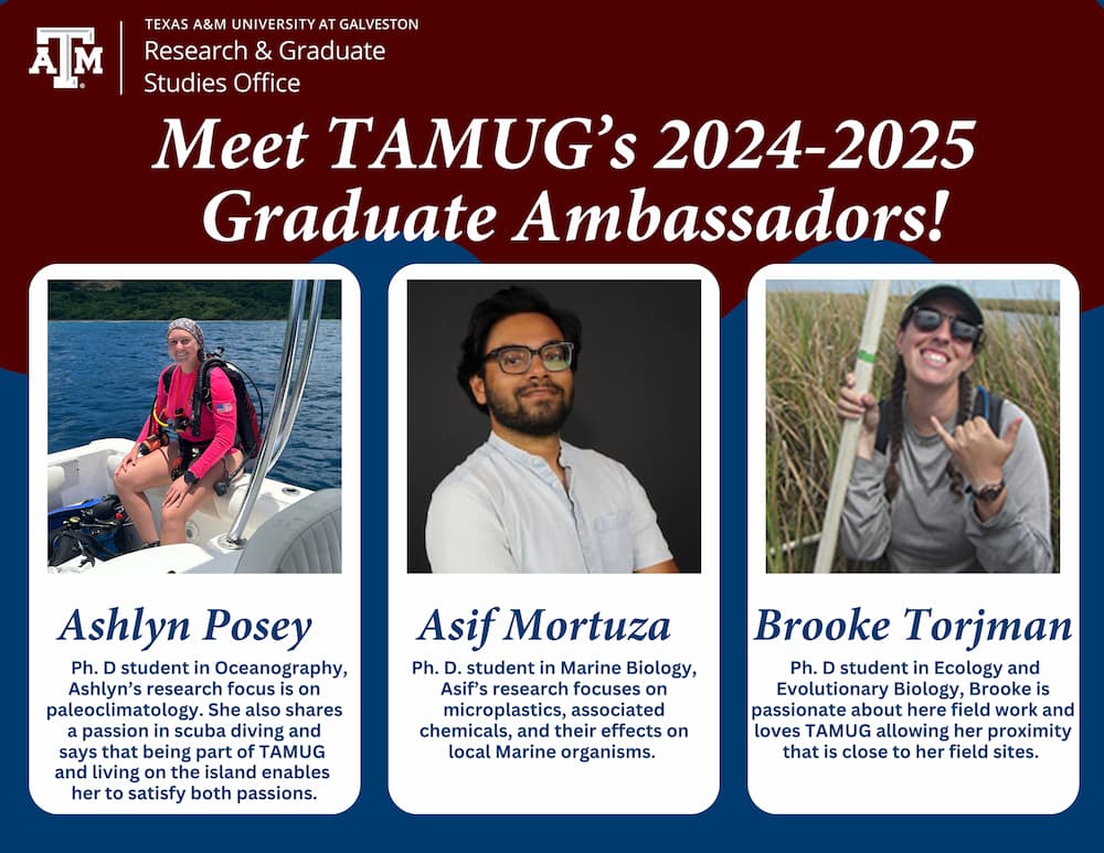 We are excited to share highlights from the New Graduate Student Orientation hosted by the Grad Studies department for this Fall. With nearly 50 of our incoming grad students joining us, both online and in person, it was a bustling and engaging start to their journey at Texas A&M University Galveston Campus (TAMUG).