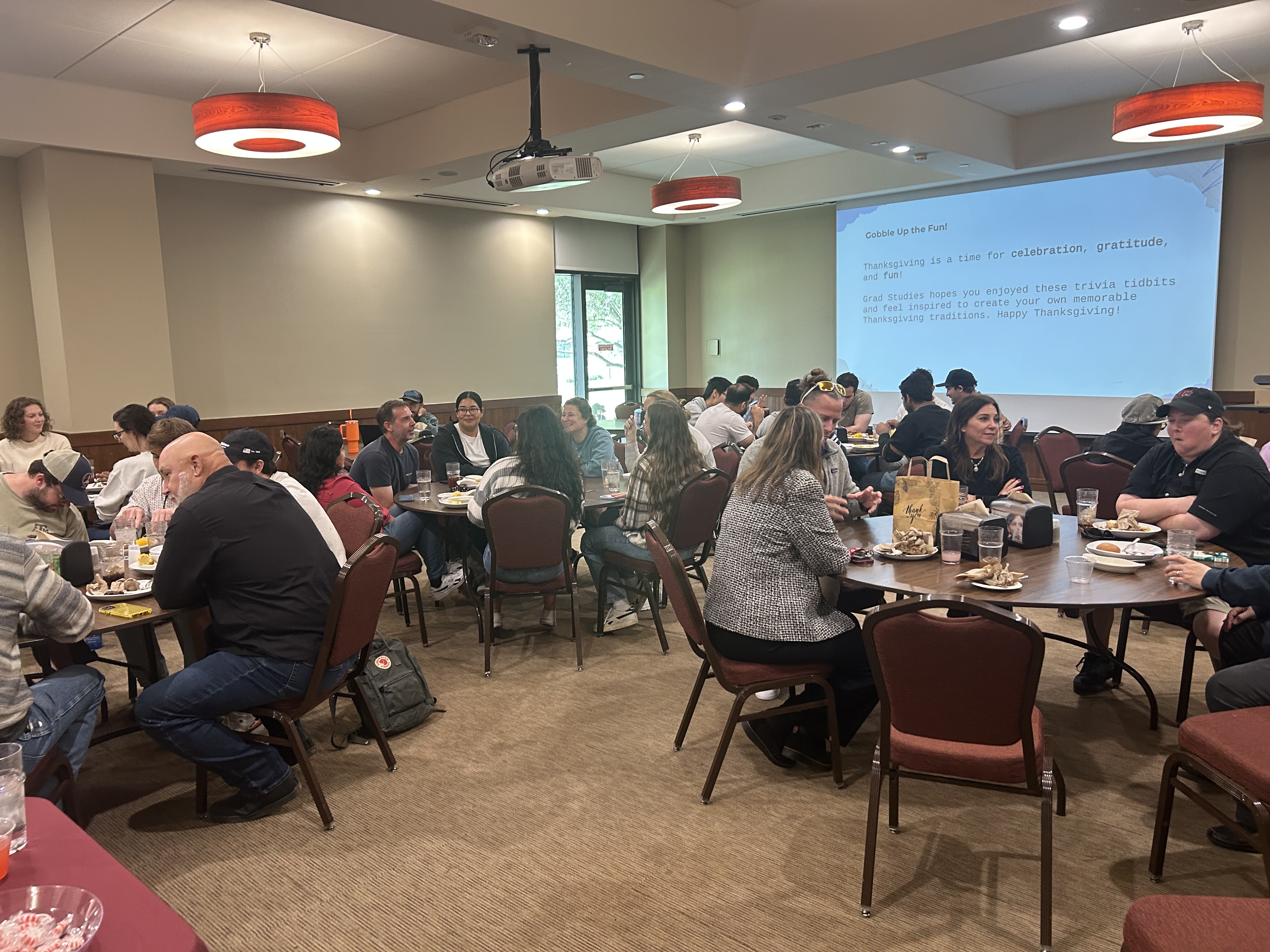 Graduate Studies hosted their annual Gradsgiving 2024, bringing together over 70 graduate students. Students enjoyed connecting with peers, sharing traditions of the Thanksgiving season, and fostering community spirit. It was a special opportunity to experience and learn about our population. The event highlighted the joy of coming together to celebrate traditions while embracing the graduate student community.