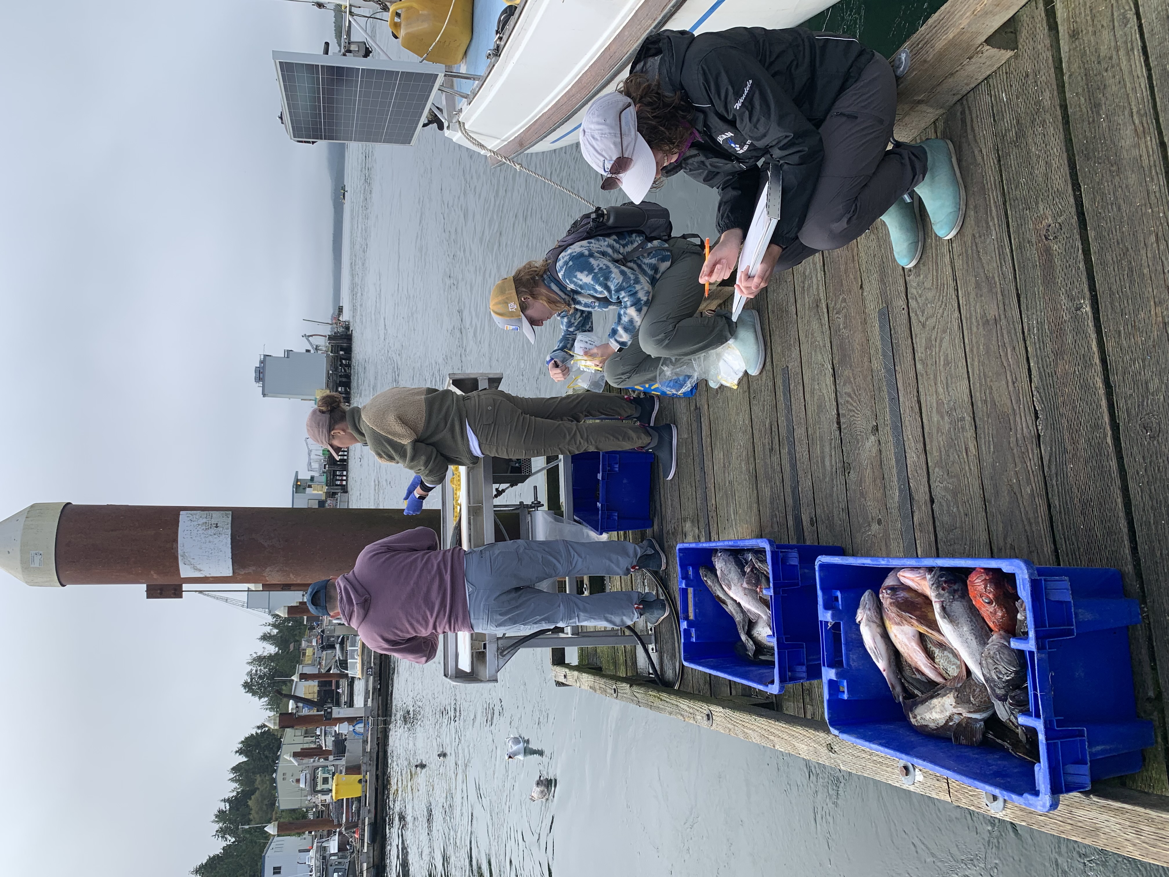 A team of graduate students and research staff from the Fisheries Ecology Lab, Phytoplankton Dynamics Lab, Shark Biology and Fisheries Science Lab sampled the fish community from Clayoquot Sound in British Columbia. Three Marine Biology Ph.D. students received partial travel support from the Erma Lee and Luke Mooney Student Travel Award. The goal of this project is to connect trophic ecology via stable isotope signatures of carbon (δ13C) and nitrogen (δ15N), to contaminant loading (perfluoroalkyl substances [PFAS] and microplastics [MPs]) in ecologically and economically important fish species with unique ecological niches.
