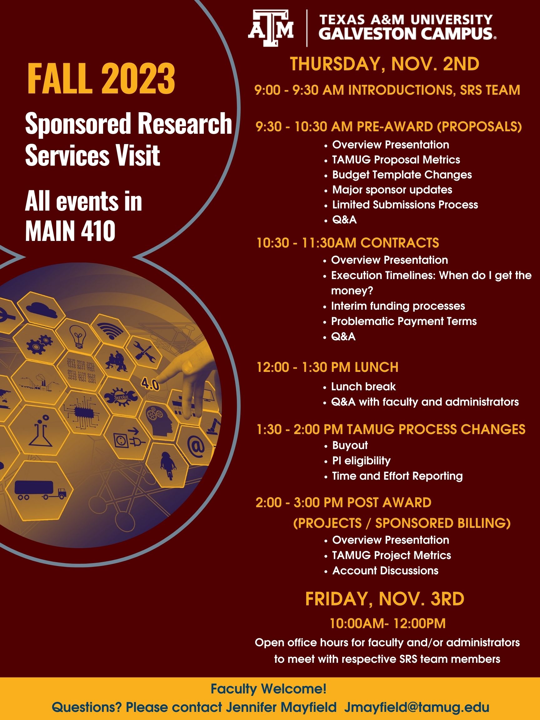 October 26, 2023: SAVE THE DATE! SRS will be at TAMUG November 2 & 3!