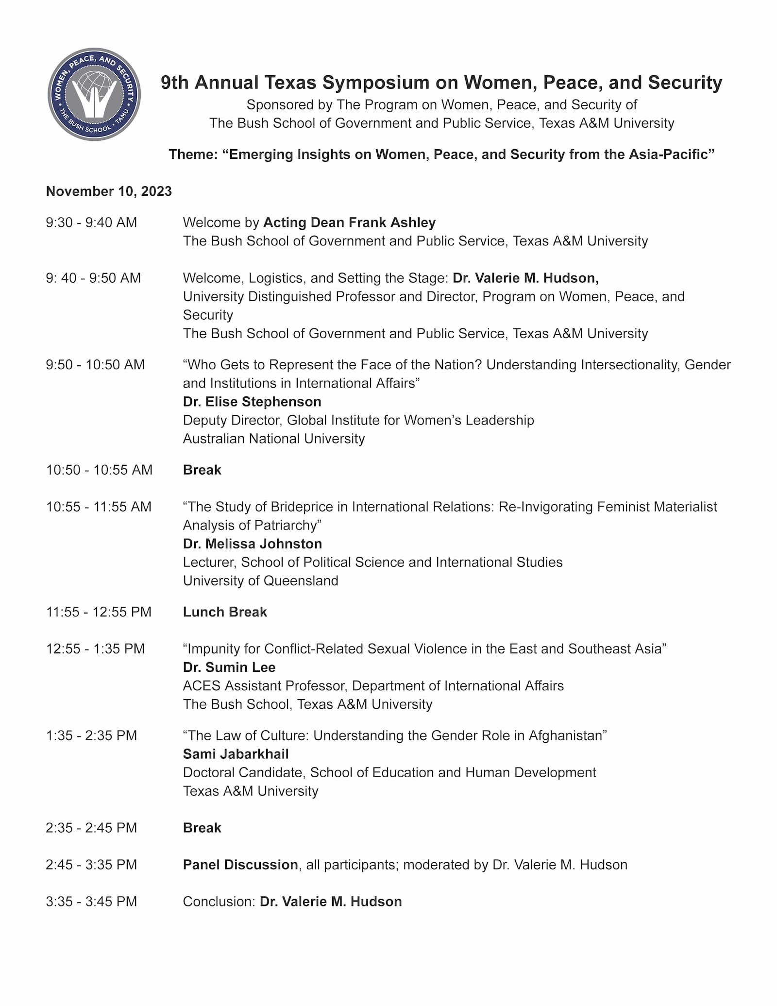 October 26, 2023: SAVE THE DATE! 9th Annual Texas Symposium on Women, Peace, and Security November 10.
