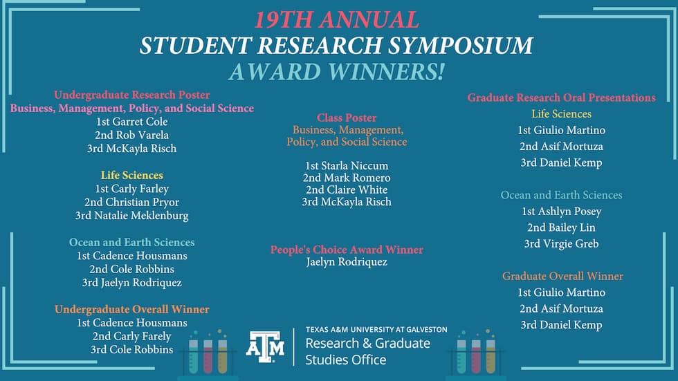 April 18, 2025: 20th Annual TAMUG Student Research Symposium- Congratulations to all of the winners!